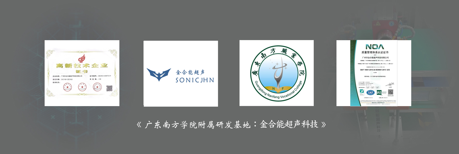 公司坐落于廣州增城區,由廣東南方院大多名院士和多名有著二十年研發經驗的高層組建。我們致力于把高智能化,高質量,高服務的產品帶給每一位客戶。我們在超聲波金屬焊接機,線束焊接機,極耳焊接機等自動化領域為客戶提供有競爭力、安全可信賴的產品、解決方案與服務,持續為客戶創造價值,釋放更大的空間,激發組織創新。金合能堅持圍繞客戶需求持續創新,加大基礎研究投入堅持以技術為核心競爭力,為各企業創造更大的價值而奮斗。